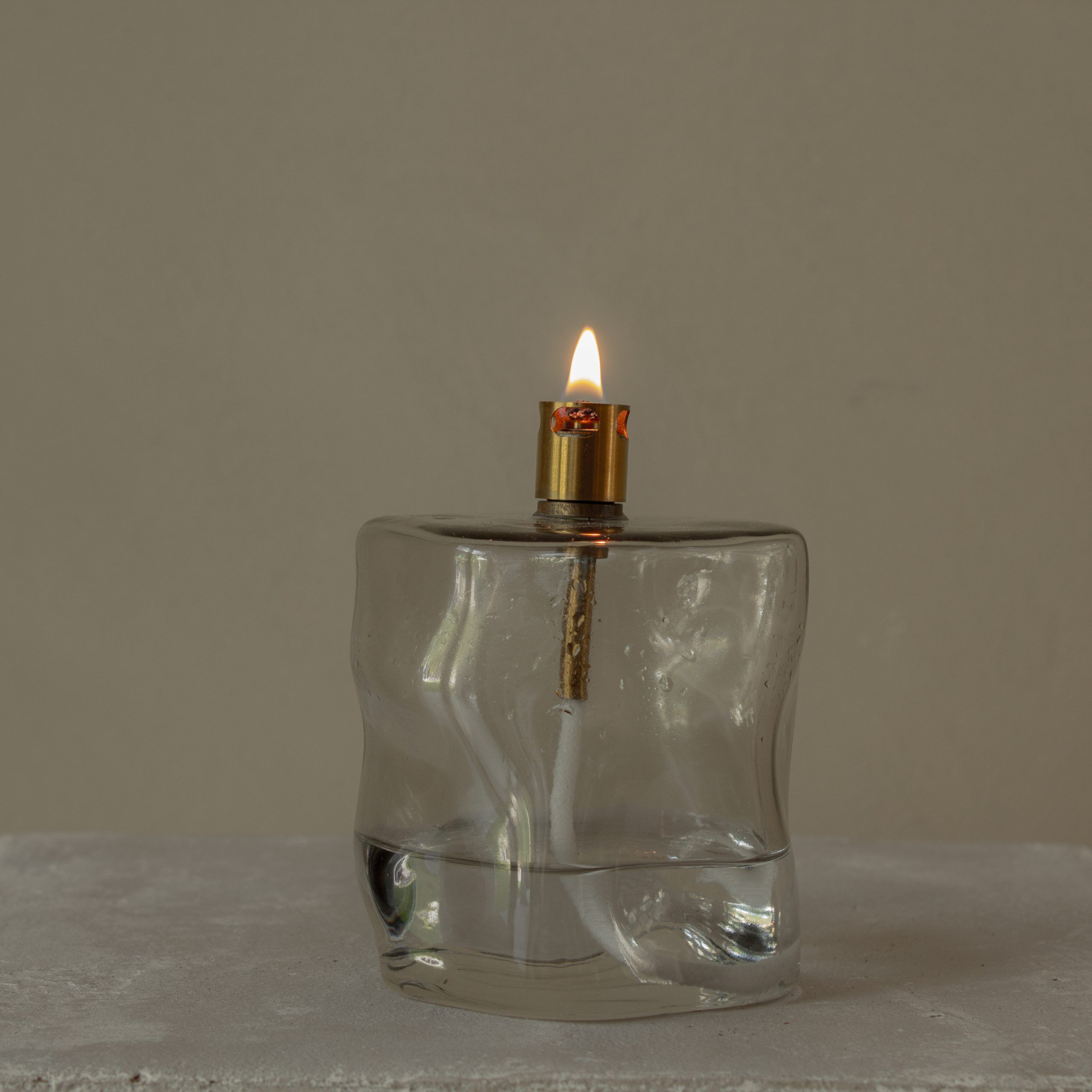 Het olielampje is met de hand gemaakt van borsilicaatglas. De lont is gemaakt van duurzaam katoen, dat zorgt voor een stabiele en gelijkmatige vlam.